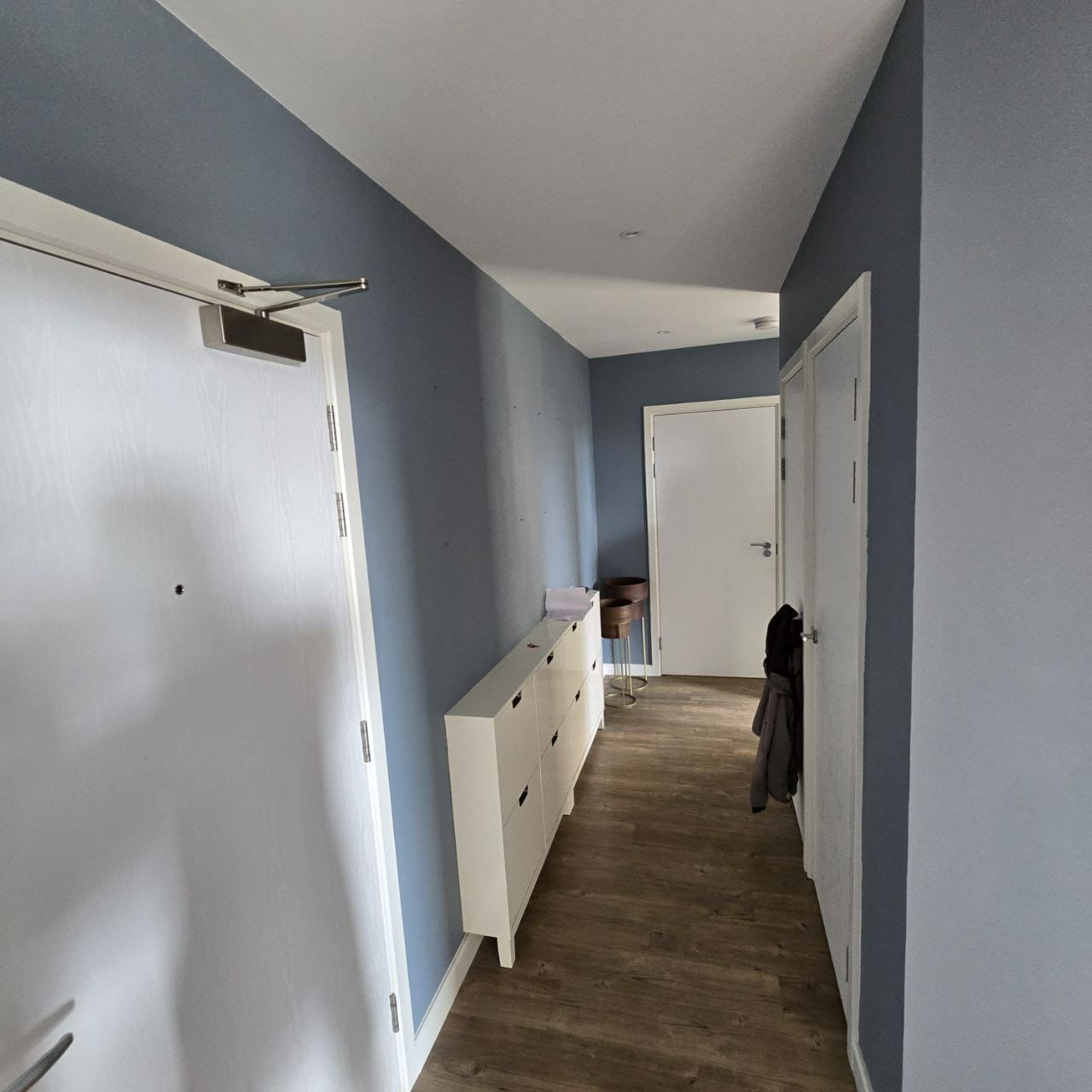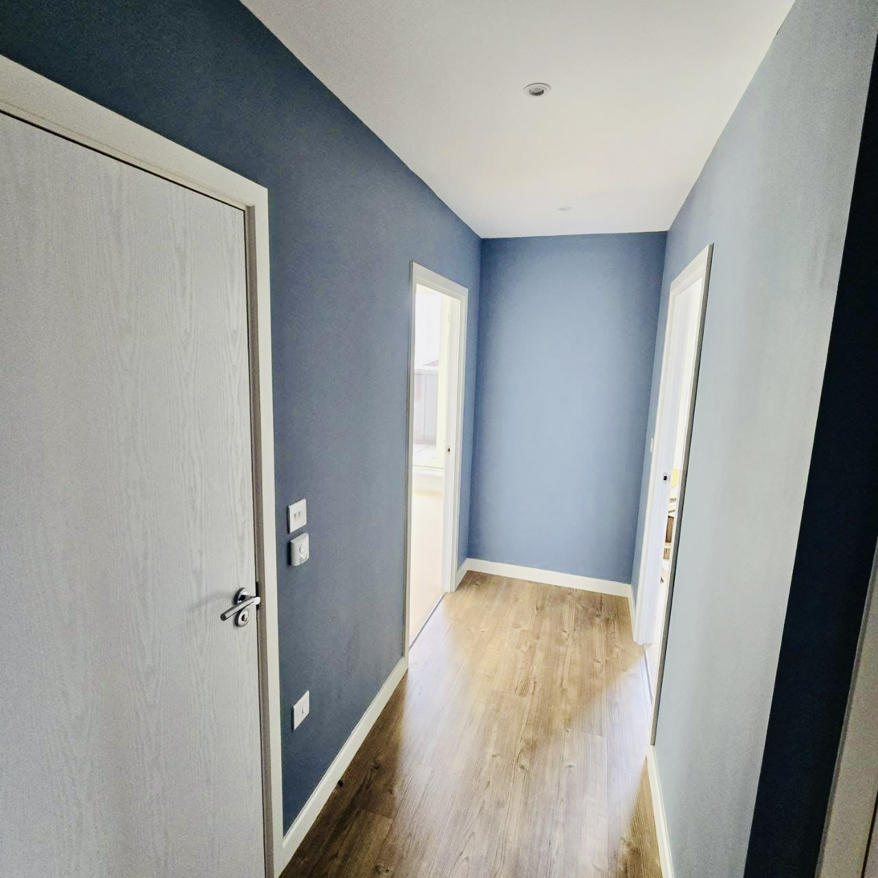 Before painting, all surfaces were prepared through sanding, patching, and priming, ensuring durability and a professional finish. Decorative moldings, including skirting and door frames, were either refreshed or replaced where needed to elevate the final look.