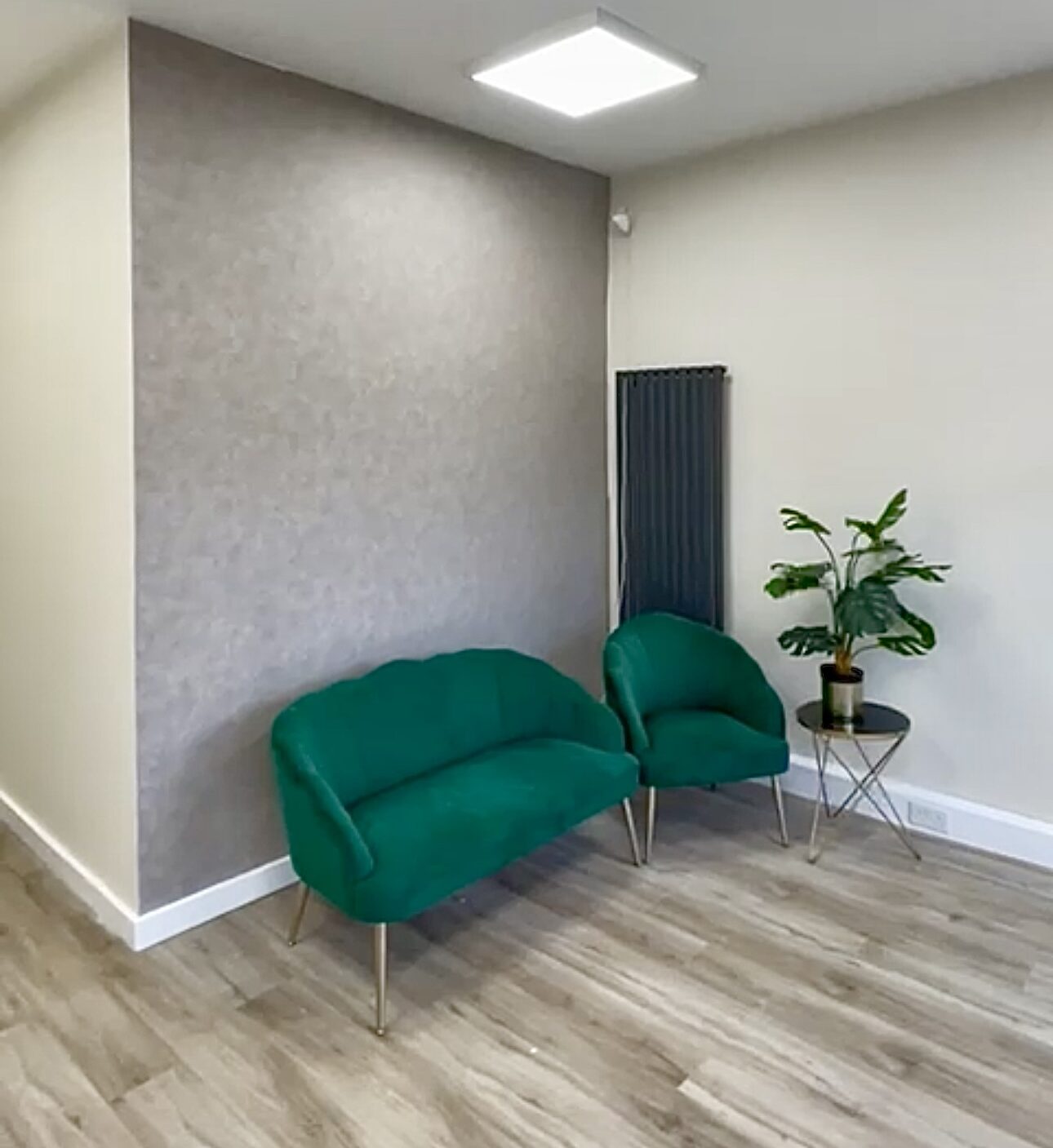 The flooring was replaced throughout with commercial-grade luxury vinyl tiles (LVT) in soft oak and stone effects—selected for aesthetic appeal, slip resistance, and easy maintenance. Subfloor leveling and acoustic underlay installation were completed beforehand to ensure a smooth, noise-dampening foundation suitable for a professional environment.