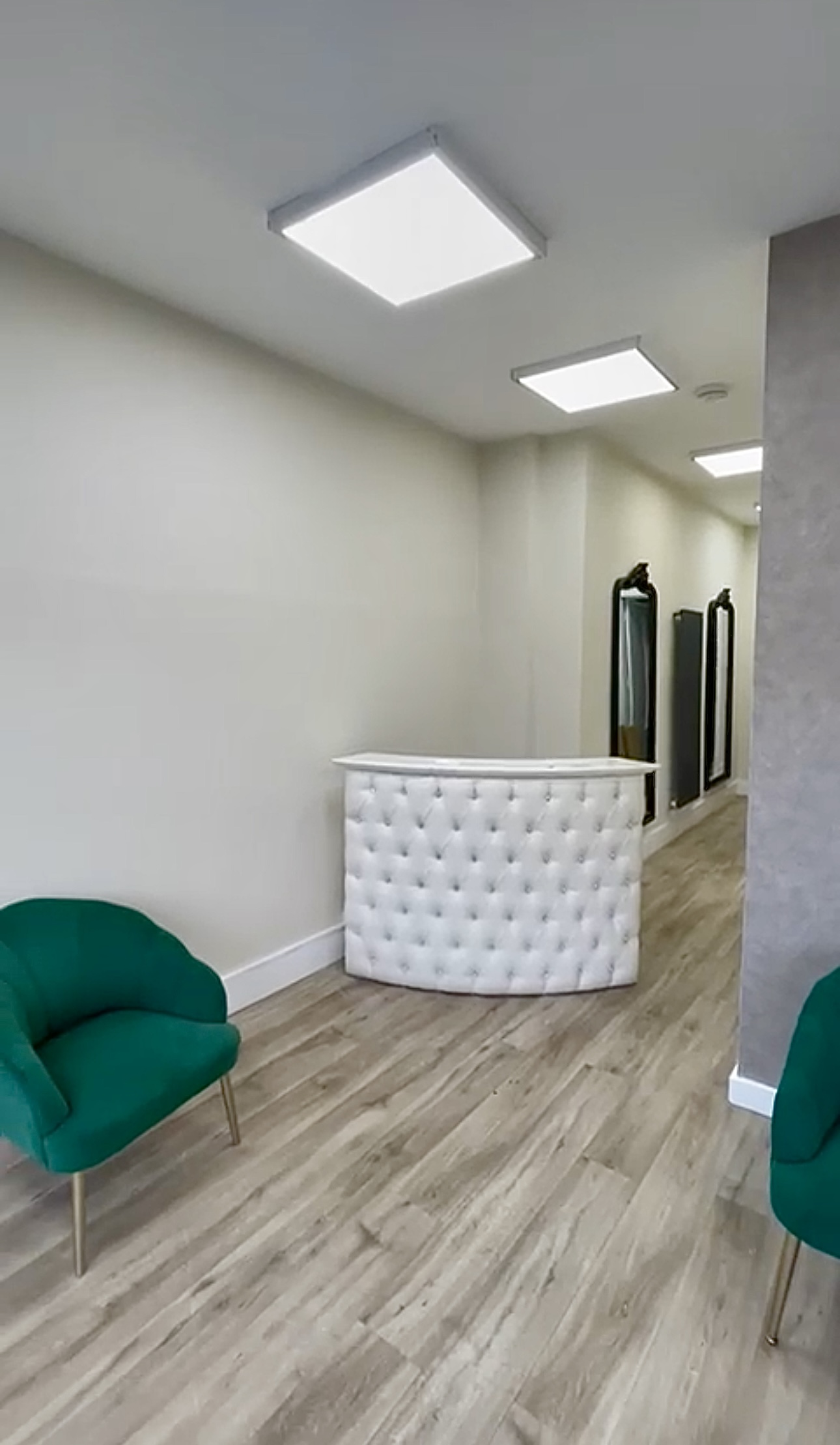 Transitions between zones (treatment rooms, reception, restroom) were seamlessly integrated with trim detailing and minimal threshold gaps, ensuring accessibility for both staff and clientele.