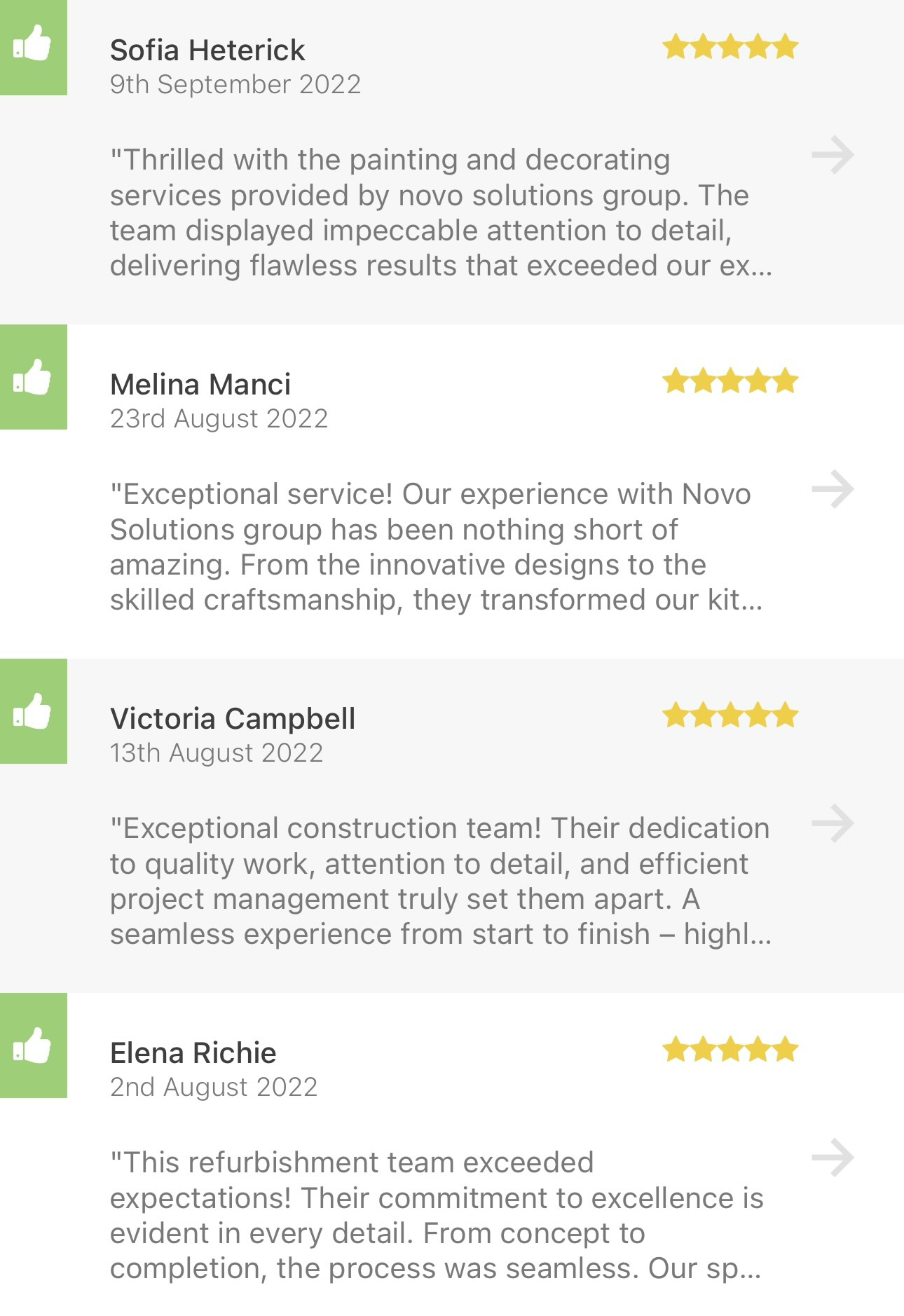 Across independent review platforms, customers describe Novo Construction Solutions Ltd as: